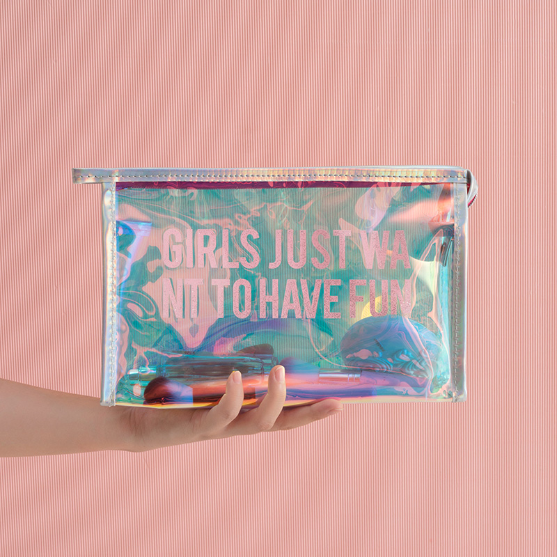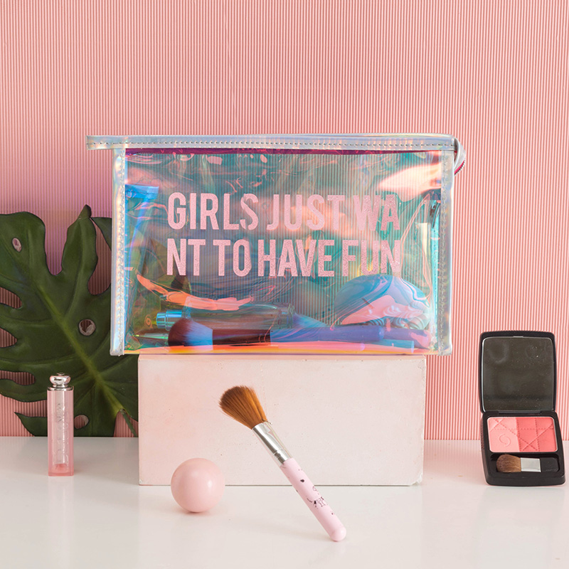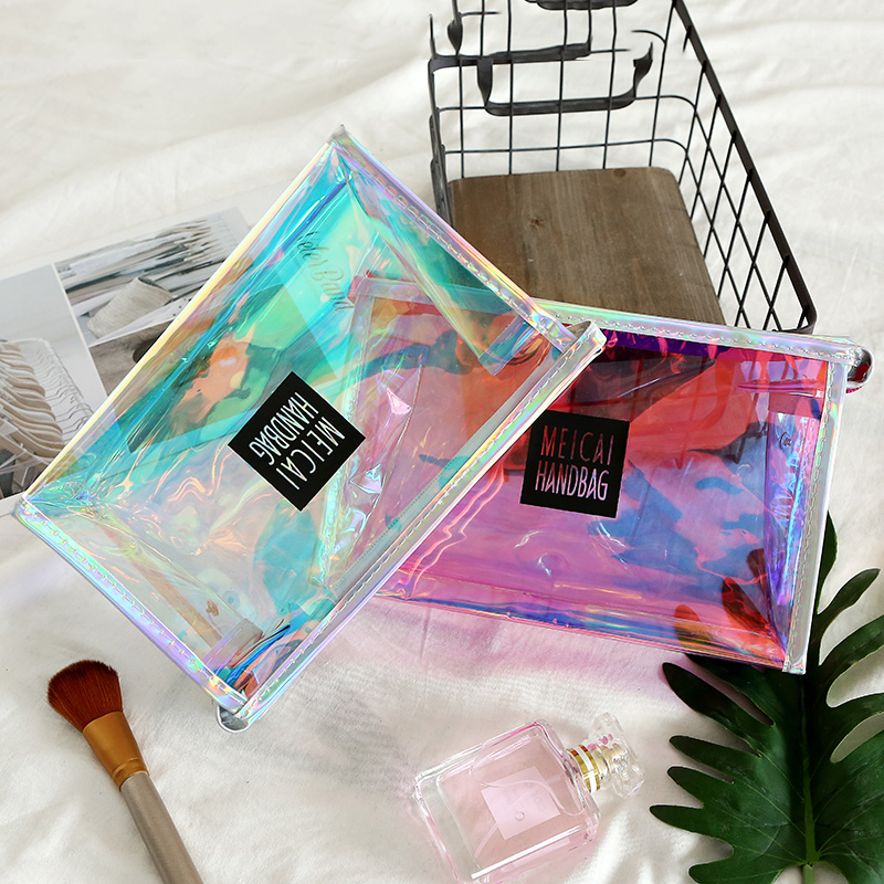 Transparent cosmetic bag Simple portable large-capacity small travel carry-on ins girl heart jelly laser wash bag
