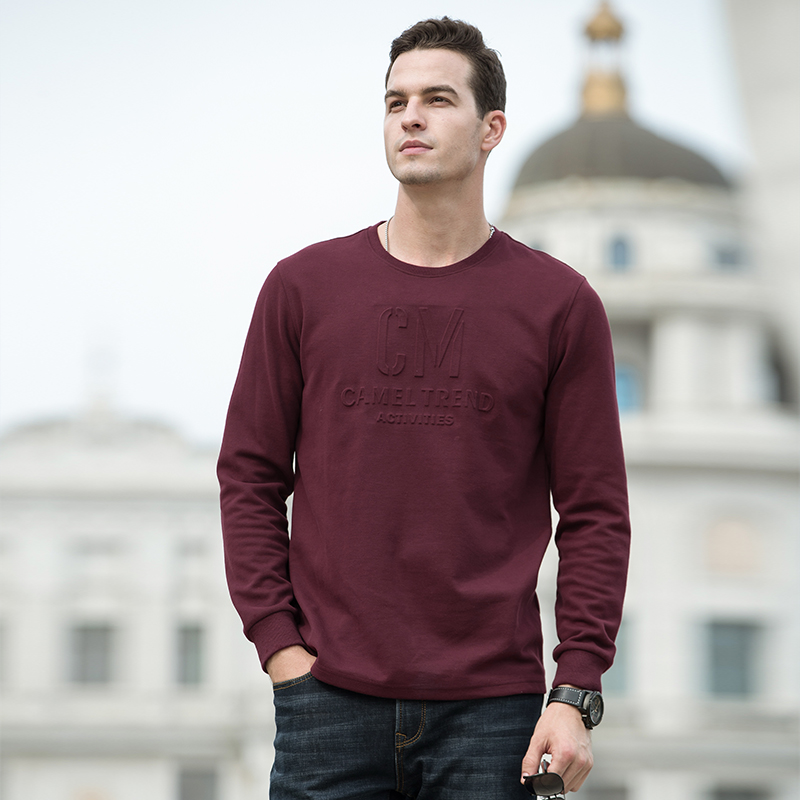 Cammel camel fall men's round collar bottom standard men's clothing youth pure Korean version regular T-shirt D8A374275