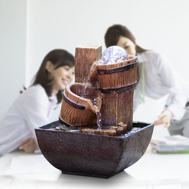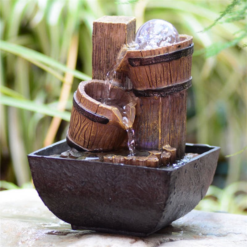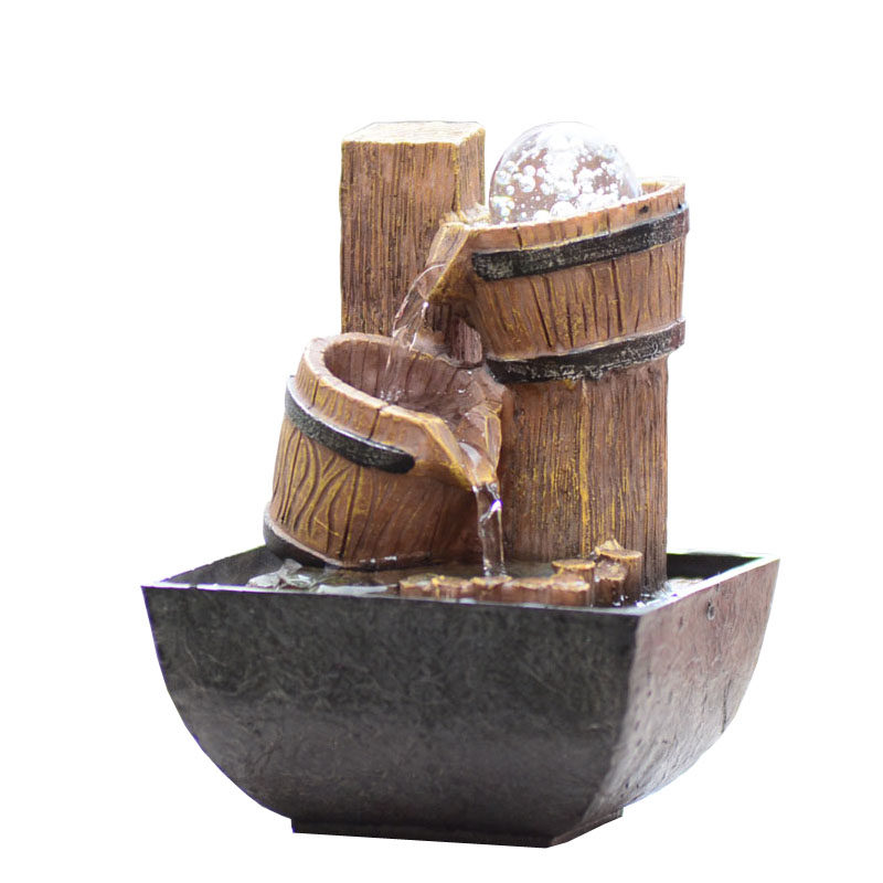 Creative feng shui wheel wood pile running water fountain decoration living room office study small waterscape fish tank humidifier decoration