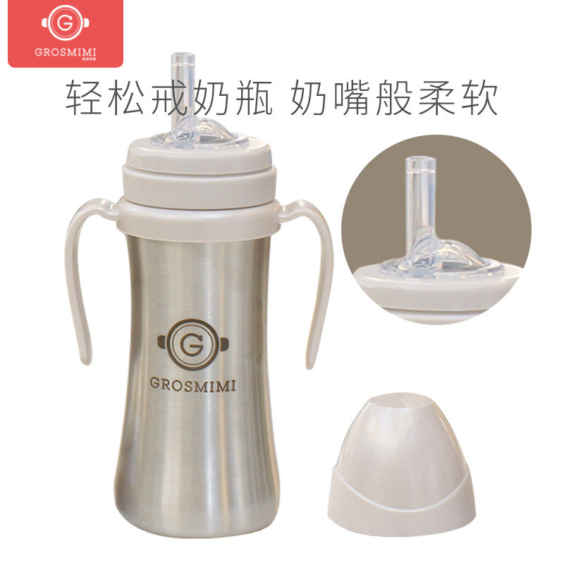 South Korea grosmimi insulation straw cup stainless steel cup Gro Mimi baby bottle accessories baby drinking milk cup learning to drink