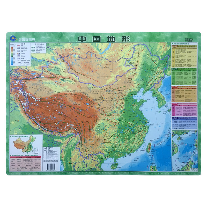 (Plastic material) China Topographic Geography Geoterrain 2019 New genuine Mini emerald version Primary and middle school students Geographic knowledge Small and medium size Type of desktop use Sub-provincial topography HD Waterproof Wall Patch Map
