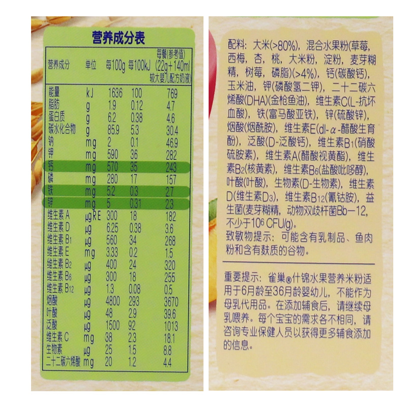 Baby nutrition mixed fruit rice noodles