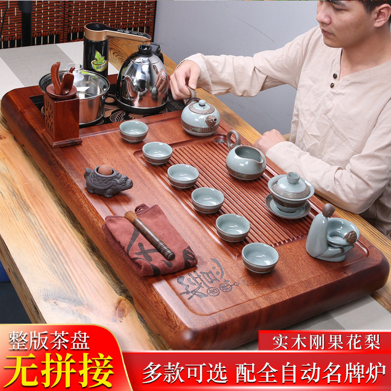 Flowers Pear Wood Whole Solid Wood Tea Tray Tea Tray Tea Set Group Live Magnetic Furnace Red Wood Full Automatic Log Home Minimalist