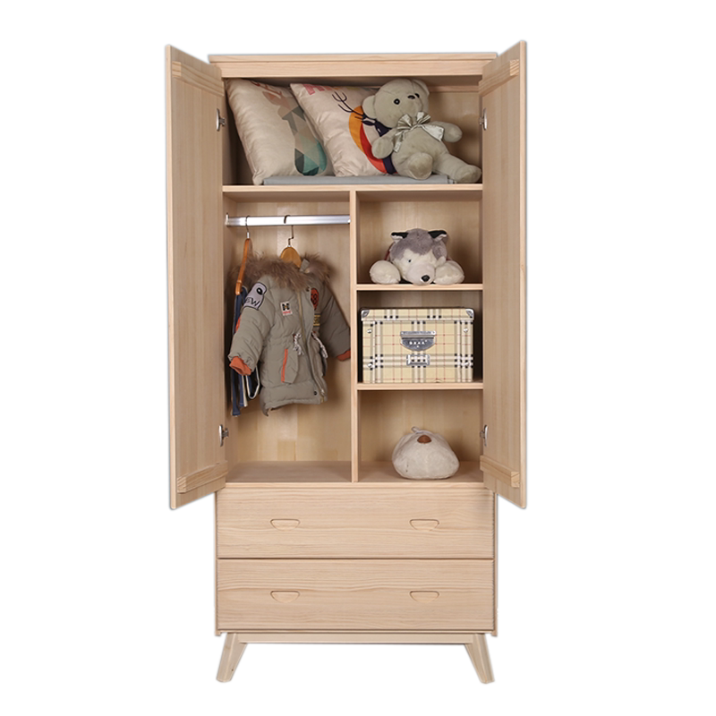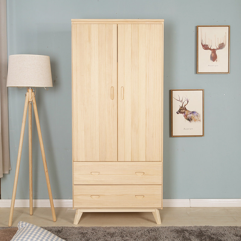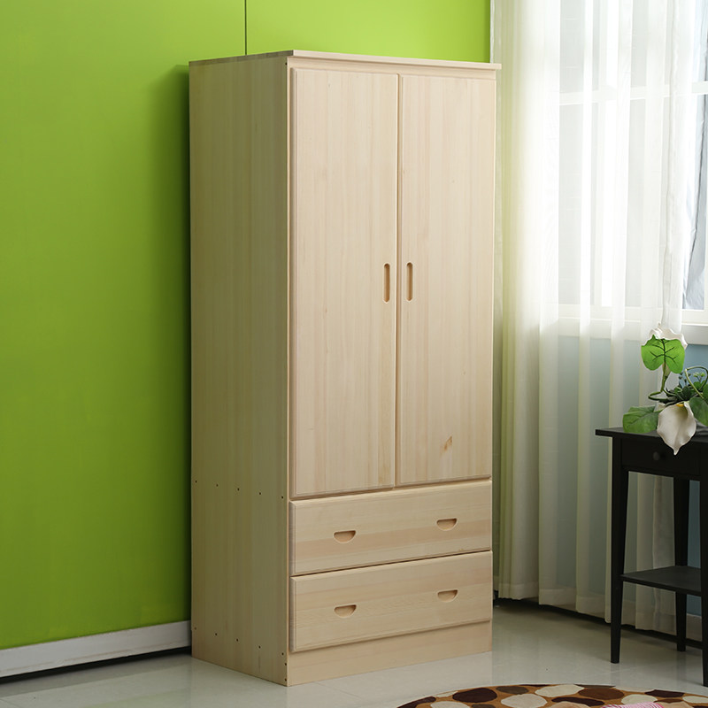Pure Solid Wood Two Doors Wardrobe Pine Wood Flat Open Door Bedroom Closet Containing Custom Set Up Nordic Small Child Wardrobe