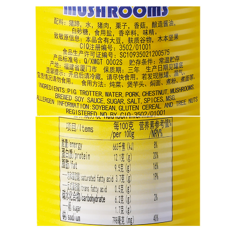 Culon food Shuyu pig feet canned, ready-to-eat halogen pig hoof cooked elbow food quickly eating meals 397g*4