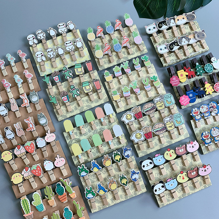 ins cartoon decoration small wooden clips photo entrainment with hemp rope room Dormitory Room Diy Photo Wall Clip