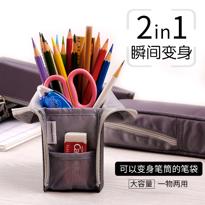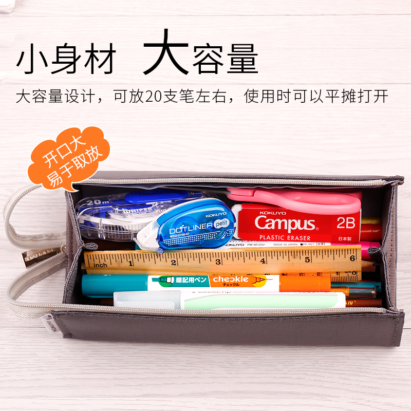 Japanese reputation gray canvas pen bag multifunctional large capacity students with stationery bag male and female pencil box Korean creative cute small fresh pencil bag small and fresh pencil bag simple collection of cake