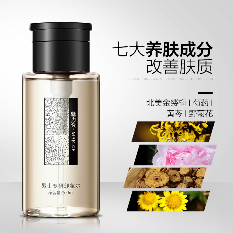 Charismatic men's makeup remover water liquid face mild without irritating deep clean eye lip three-in-one pressing bottle