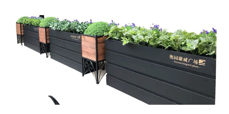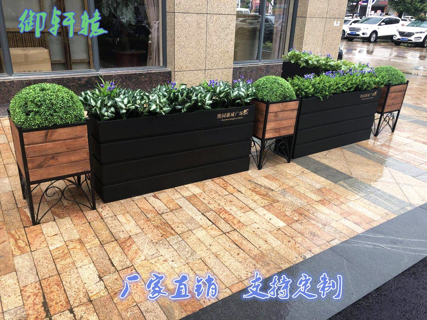 Outdoor gardening floral box combined planting box Commercial street anti-corrosive wood frame removable iron flower tank severance pool