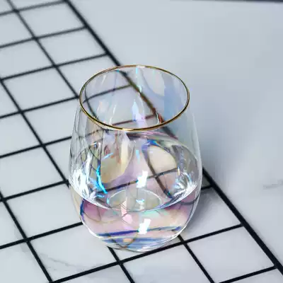 Rainbow big belly glass cup Xueshan rainbow glass cup golden mouth colorful big belly cup Phnom Penh mouth transparent big belly cup Rainbow small 350ml glass