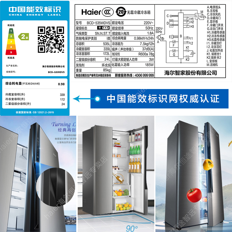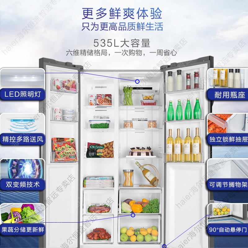 Haier Domestic Refrigerator Double Door Pair Open Door Frequency Conversion Intelligent Air-cooled Frost-free official BCD-535WDVS