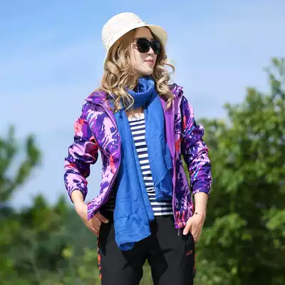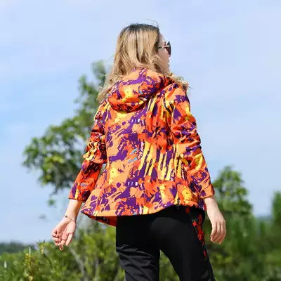 Outdoor fashion camouflage soft shell coat women's coat breathable fleece warm suit hiking thick slim
