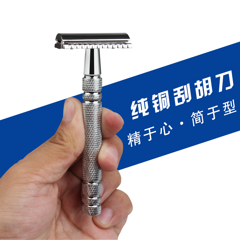 Sharp German old-fashioned men's razor manual double-sided razor set pure copper metal razor blade