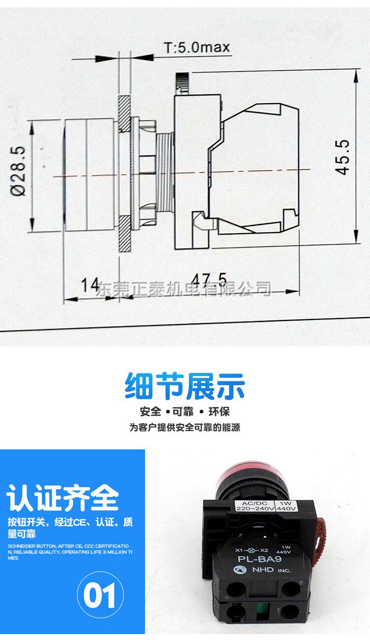 Brand new Taiwan NHD congratulatory original clothing import 1 often open flat head with lamp bright LED lamp pearl NLB22-F