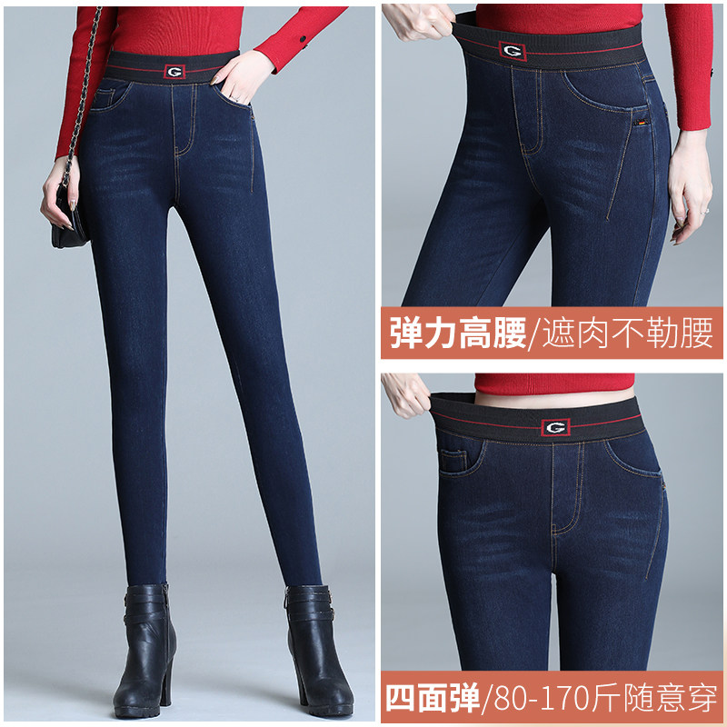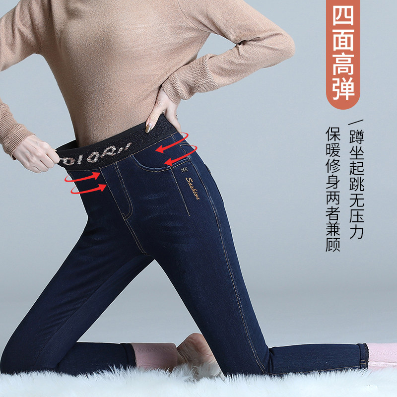 Velvet thickened jeans Women's winter camel velvet small feet cotton pants Large size wear Northeast-grade extra thick wool warm pants