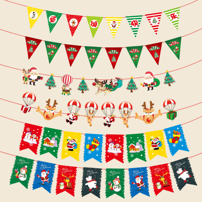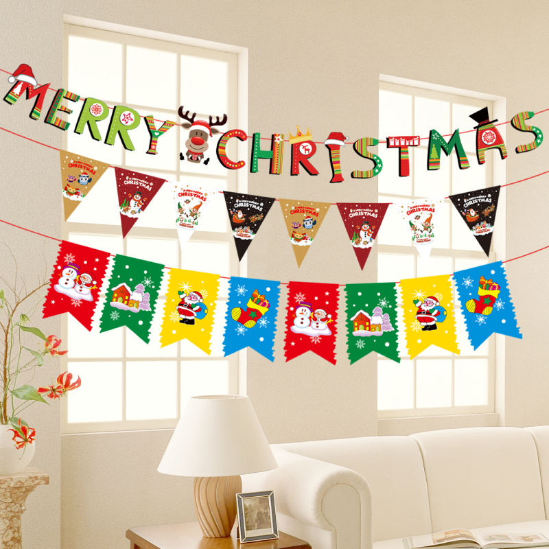 Christmas flag pennant letter bunting flag hanging flag mall supermarket Hotel 3 m paper hanging flag decoration supplies