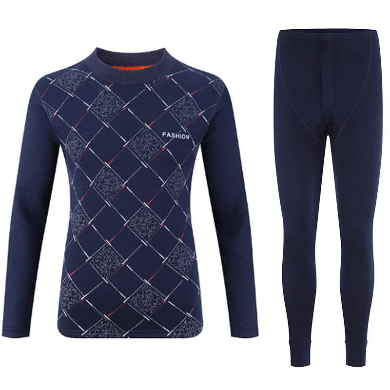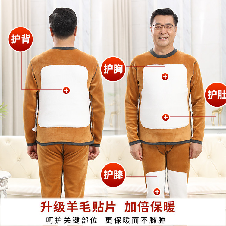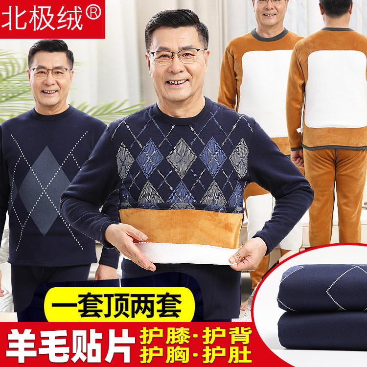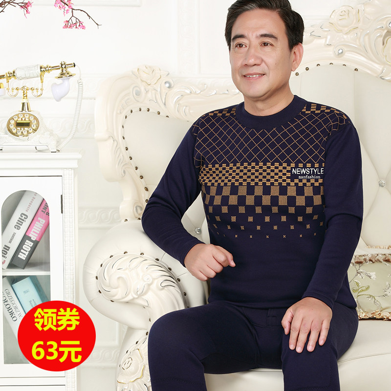 Middle-aged and elderly people's thermal underwear plus velvet thick suit men's autumn clothes and johns high collar men's earth print dad winter