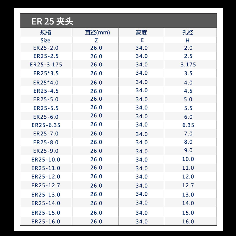 New high precision ER25 chuck engraving machine Collet elastic chuck Winder tip milling cutter chuck full