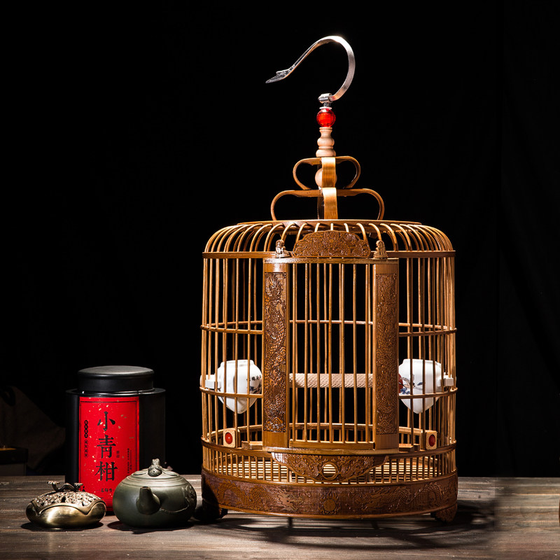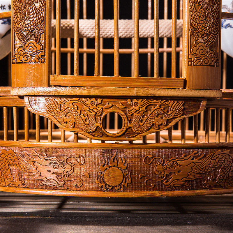 Raw Head Old Bamboo Painting Brow Cage Eight-brother Bamboo Bird Cage Bamboo Boutique Sculpted Sichuan Cage Old Mountain Bird Full Engraving Large Number