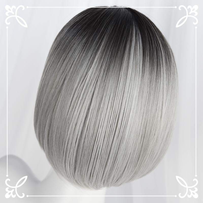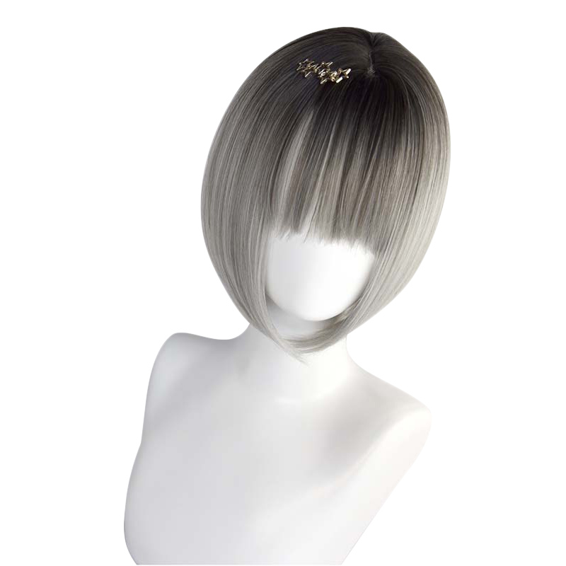 Swann family-wig female 20cm gradient black silver short hair buckle super face small cos anime -) Star move)