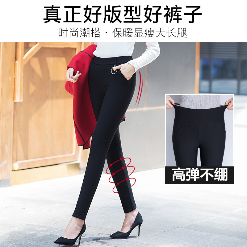Black plus suede thickened silk inner lap pants female outside wearing winter high waist small feet long pants warm northeast wool cotton pants