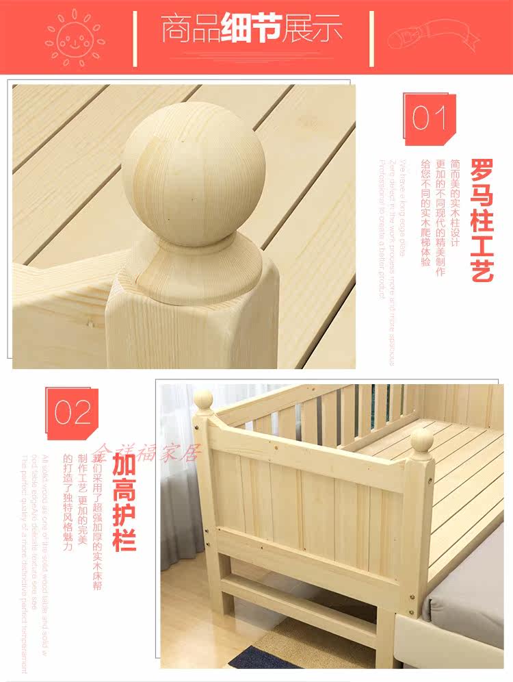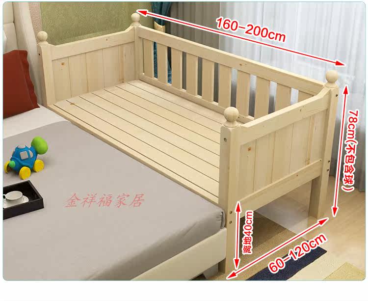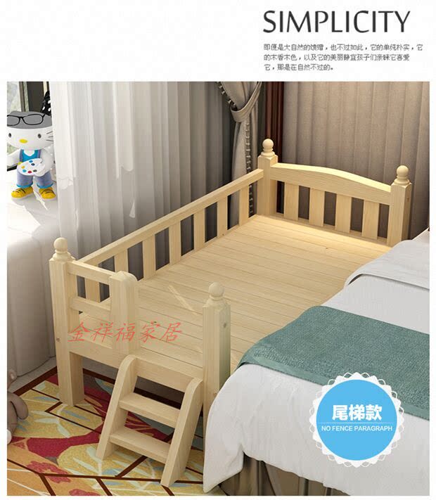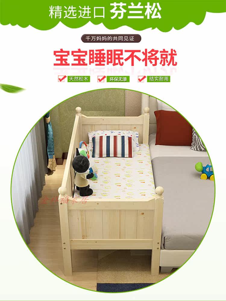 Thickened newborn baby children bed linen bed with guard rail plus bed splicing reinforced bed leg bedside solid wood pine wood bed