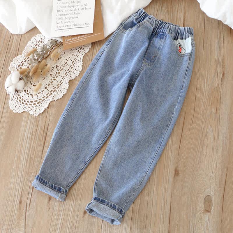 Girl Jeans Spring Autumn CUHK Child 100 Lap Spring Dress New Girl Casual Pants Robe Old Daddy Pants Loose Long Pants
