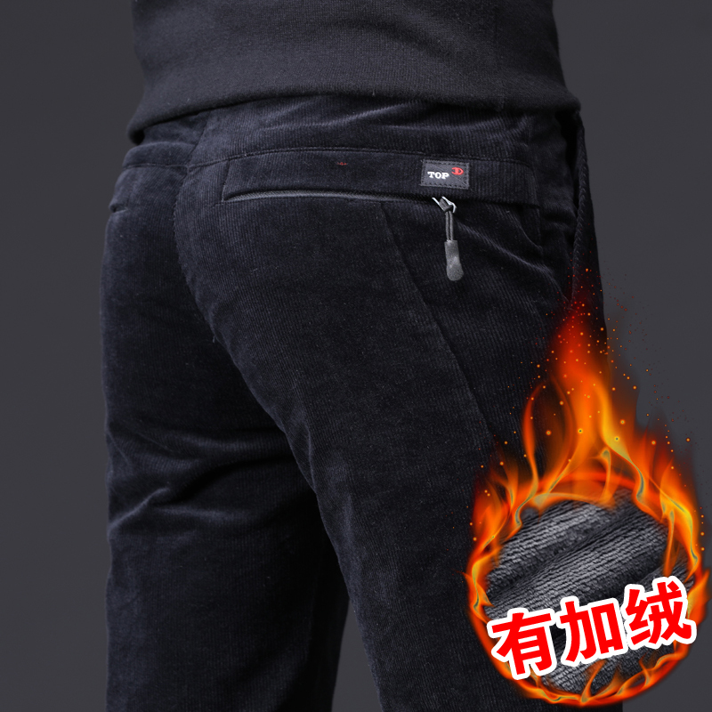 Fall/winter pants men's corduroy men's pants casual pants men plus velvet padded loose dad middle-aged winter thick velvet