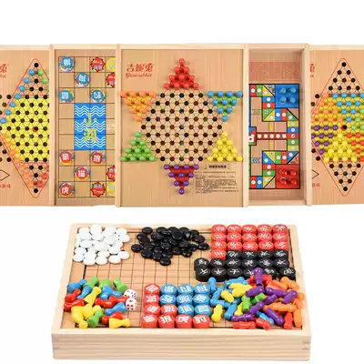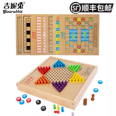 New★Solid Wood boxed four-in-one (Gobang flying chess beast chess Snake Chess) New★Solid Wood boxed four-in-one (Gobang Flying Chess Snake)★Hot sale★Two-in-one