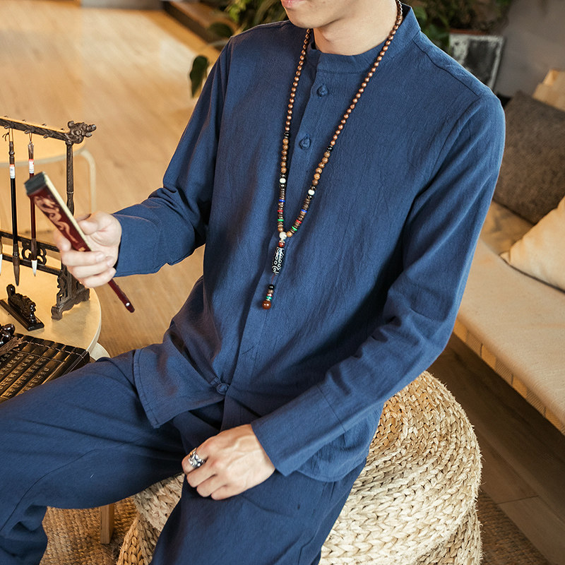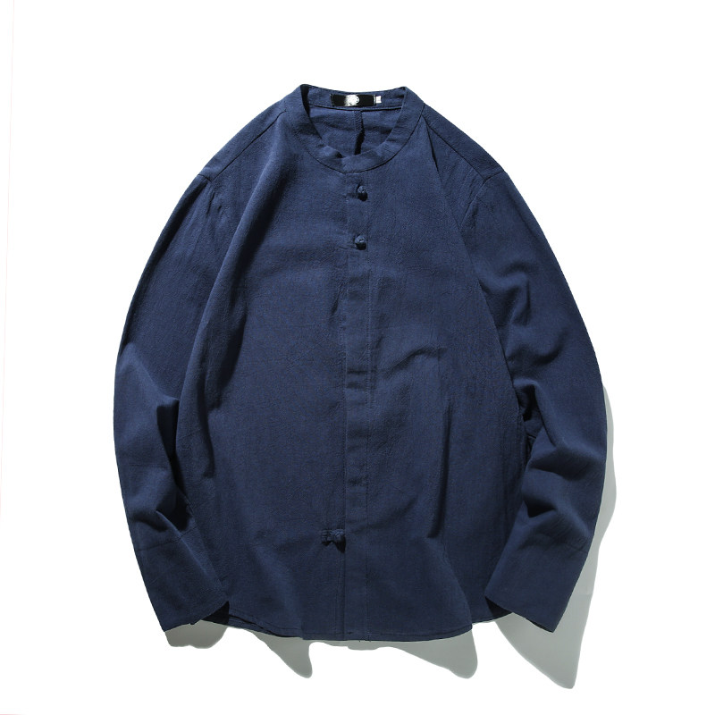 China Wind Men's Clothing Ancient Wind Daily Clothing Cotton Linen White Shirt Male Long Sleeve Retro Disc Buckle Shirt Fat size Size Tide