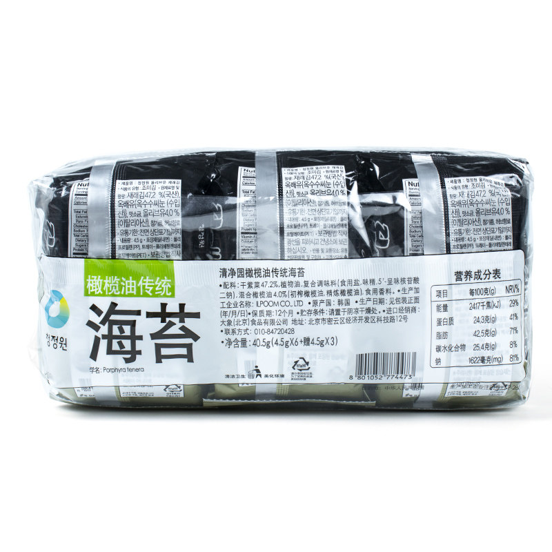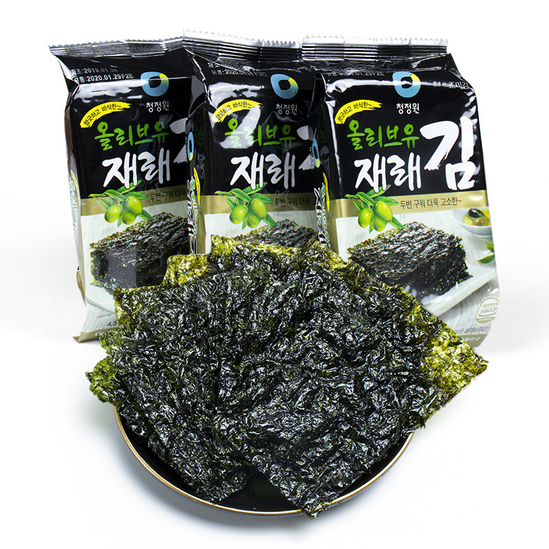 Korea imported Qingjingyuan olive oil Traditional seaweed roasted seaweed crushed children's sushi rice bibimbap ready-to-eat 18 packs