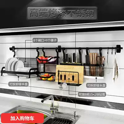 Kitchen shelf Stainless steel pendant punch-free black wall-mounted knife holder storage shelf Drain dish rack package