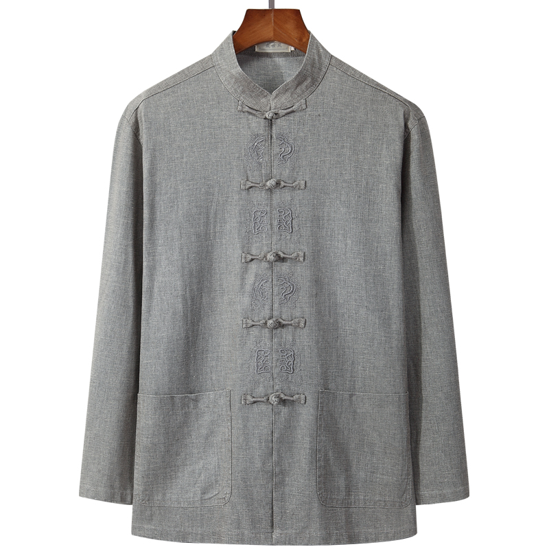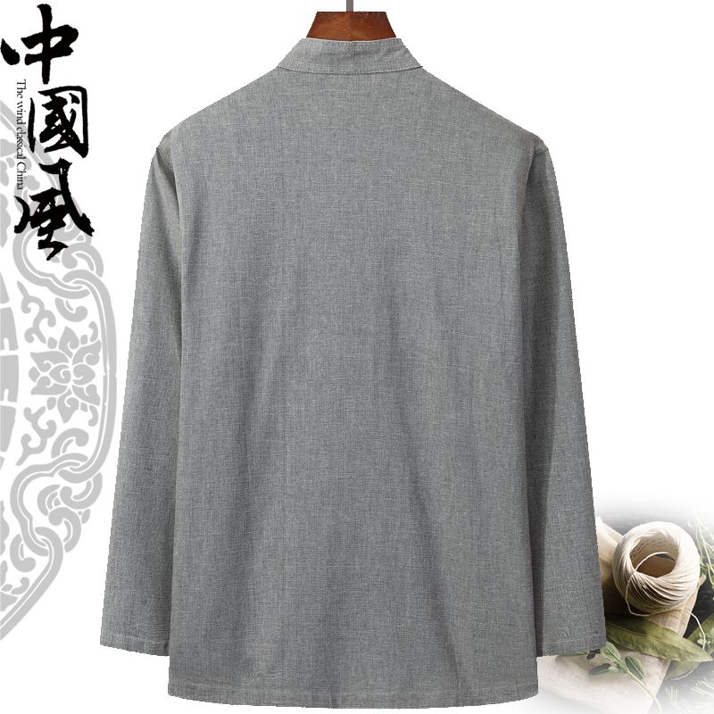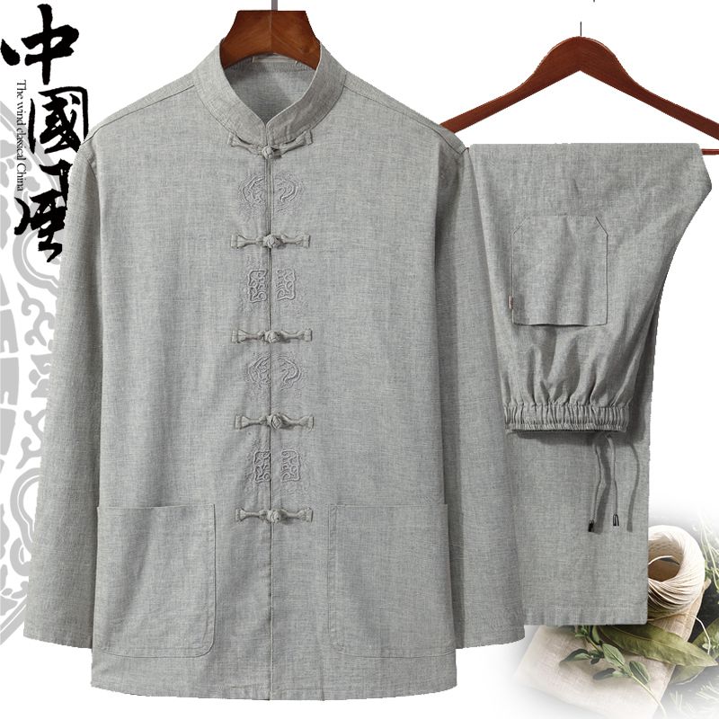 Spring and autumn cotton and linen Tang suit men's long-sleeved middle-aged and elderly grandpa Chinese Hanfu linen Chinese style suit plus fertilizer to increase