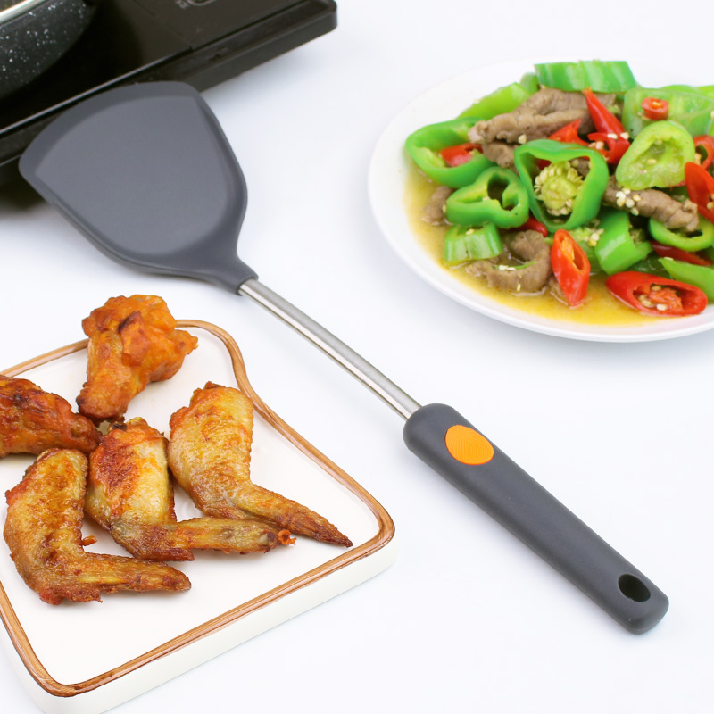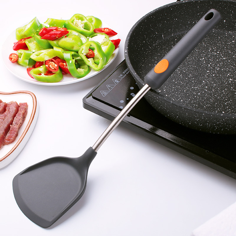 Non-stick pan shovel anti-scalding pan shovel frying spoons saute sautziers without injury pan cookware high temperature resistant stainless steel silicone pan shovel