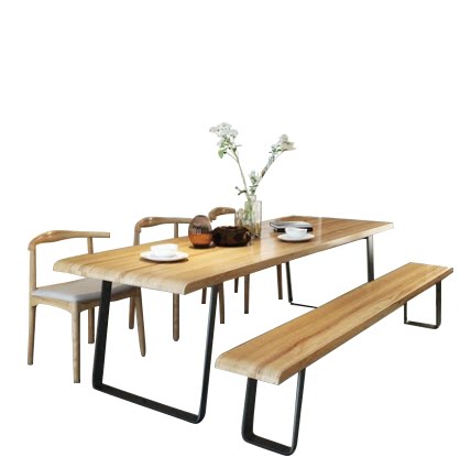 Dining table and chair combination Nordic solid wood loft wrought iron retro desk long table log conference table simple workbench