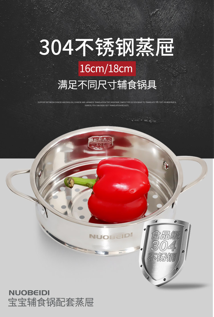 Korean petals pig baby deputy food pan steamer 304 stainless steel 16cm18cm milk pan with small transpire steamer steaming layer