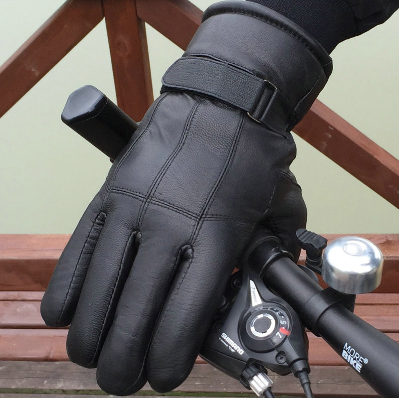Thickened warm leather gloves men's electric car winter fur one-piece cycling cold motorcycle gloves winter