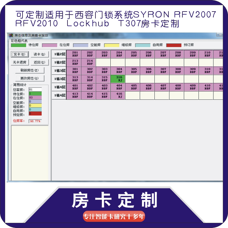 Can be applied to Xirong syron RFV2007 2010 Lockhub T307 door lock registration room card customization
