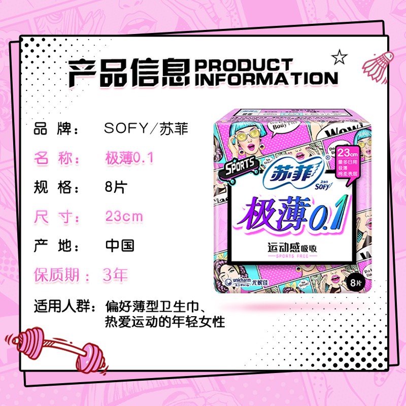 Sophie sanitary napkin extremely thin 0 1 day use 230mm elastic close-fitting cotton soft aunt towel 8 pieces six pack