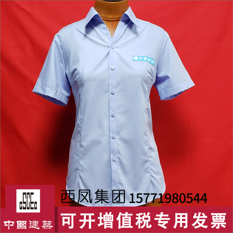 Medium build CI clothes shirt in shirt short sleeves blue long short sleeves in construction tooling jacket pure cotton Chinese construction system tooling