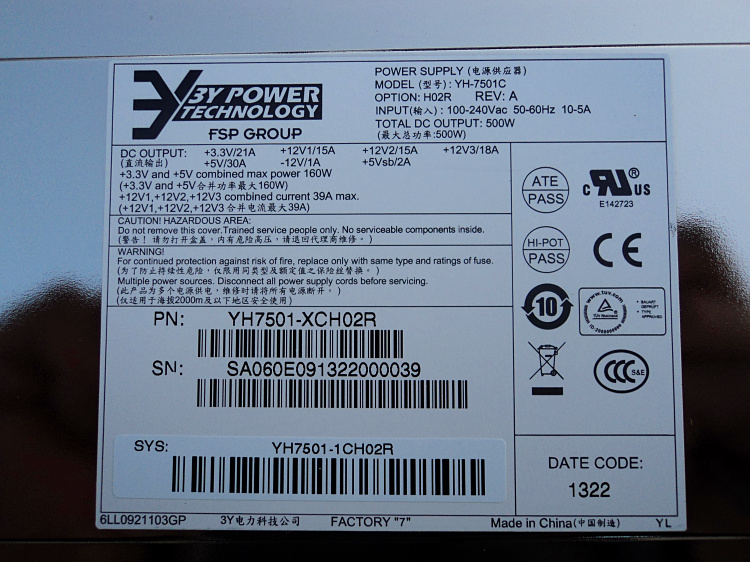 Original 3Y YH-7501C power supply 80PLUS 2U server redundant power supply 500W power supply cage