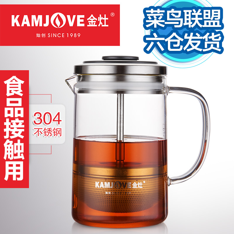 KAMJOVE Gold Foci Small Green Mandarin Exclusive Flush Pot Office Tea Passage Cup Heat Resistant Glass Tea Set Creative Flutter
