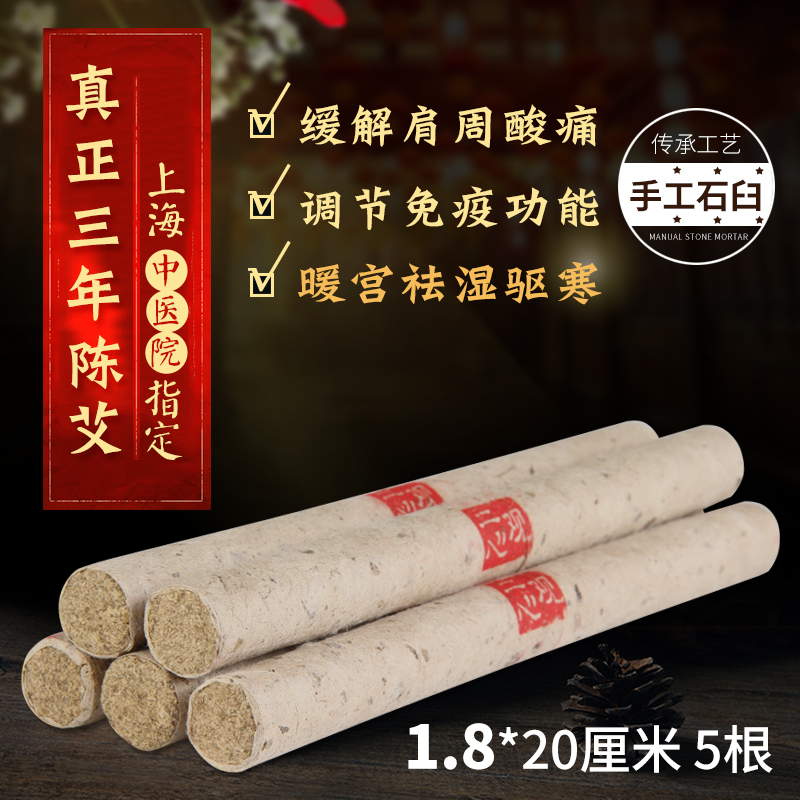 Guan Er Xin Moxa Strip 1.8cm Moxibustion Strip Pure Handmade Stone Mortar Wormwood Pillar Smoked Household Moxa Stick 3 Years Chen Chun Ai