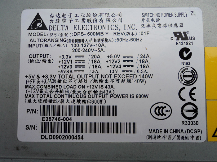 Lenovo Wanquan T260 G2 server power supply DPS-600MB Y rated 600W 36001735