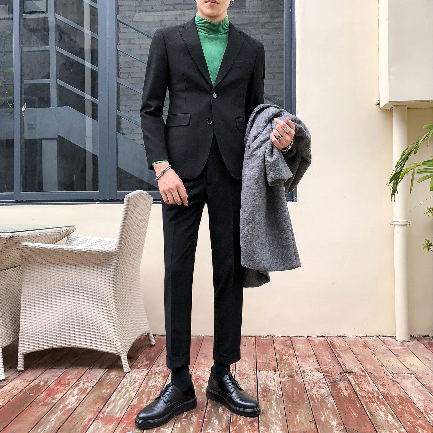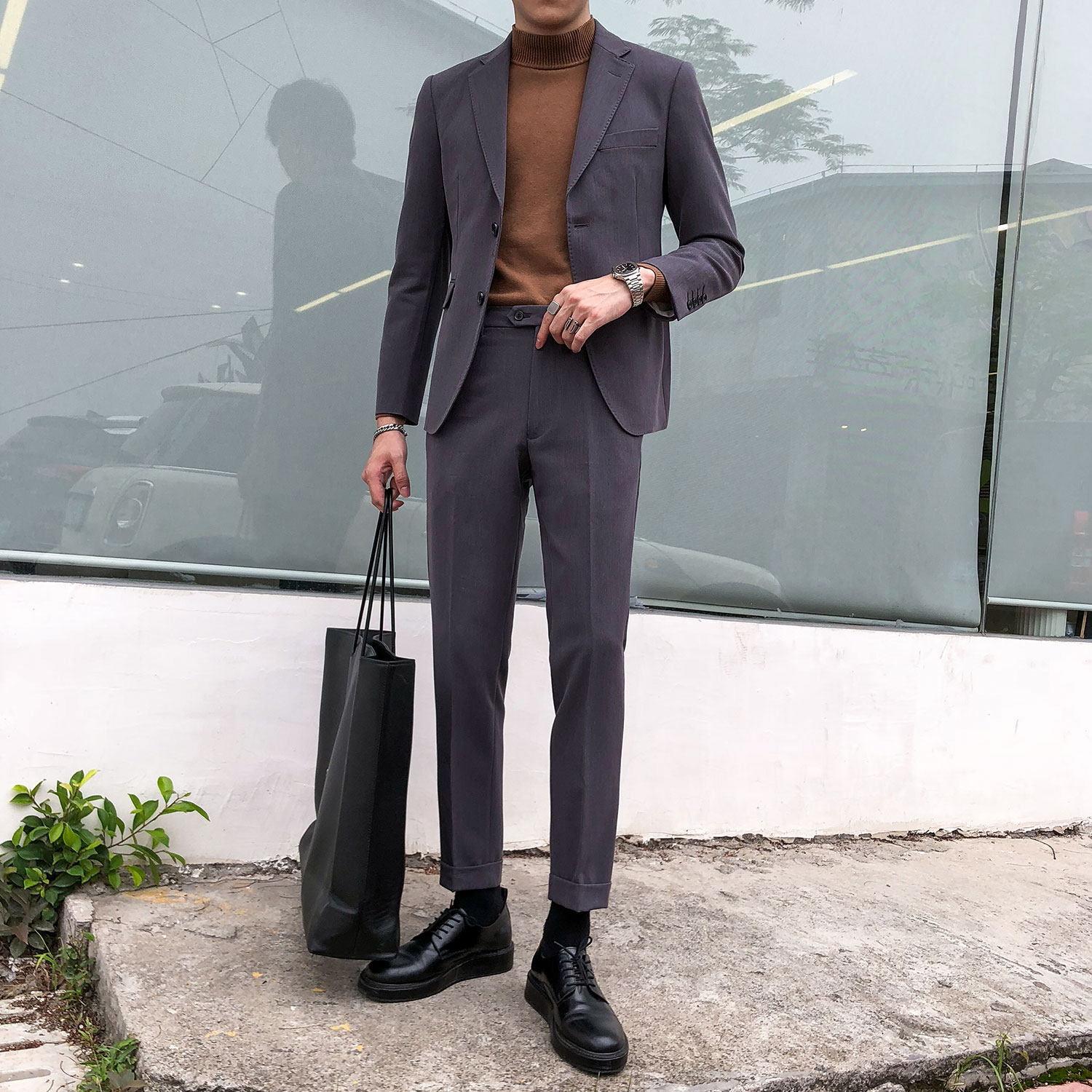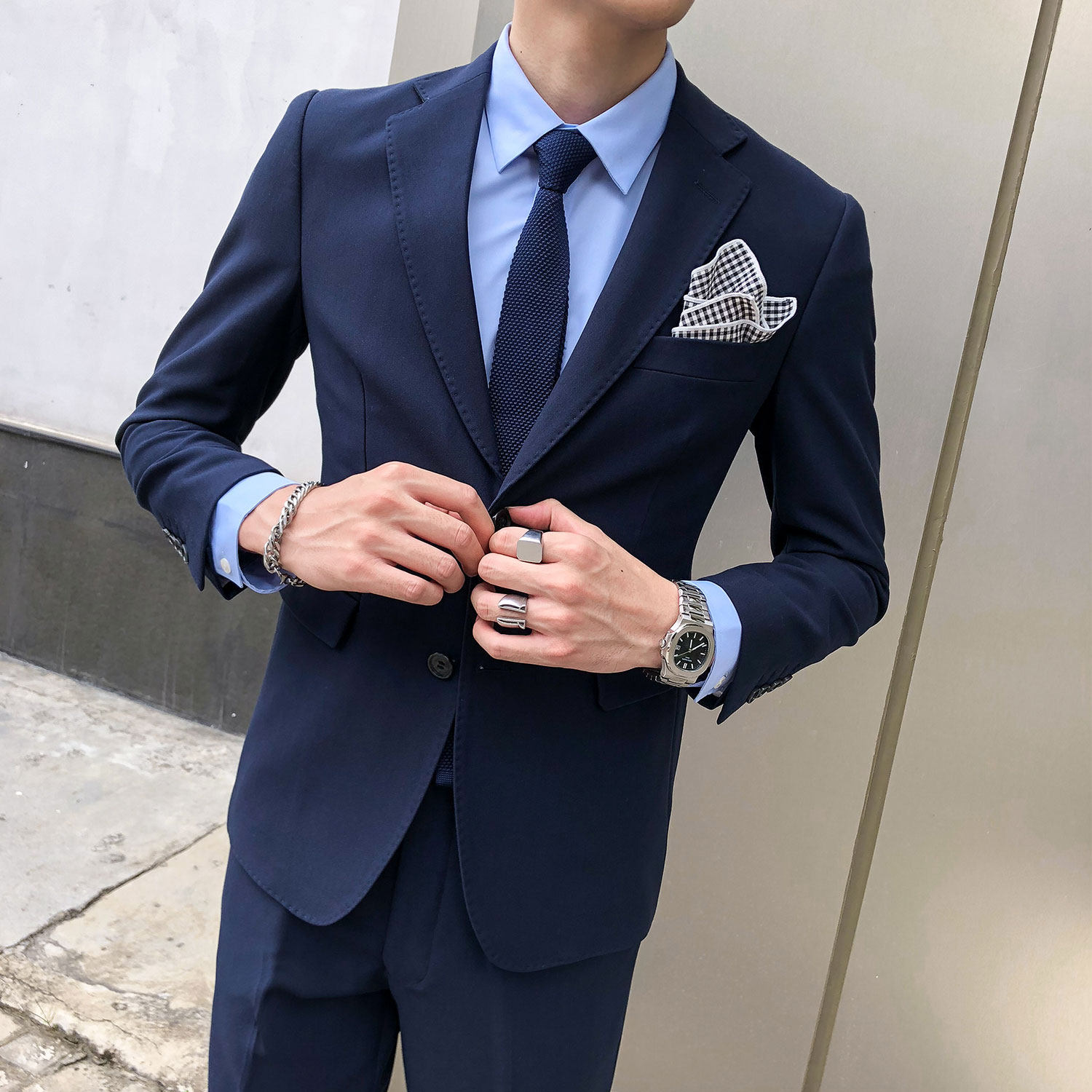 South Korea's Dong Dengmen Western-style suit men's spring new self-fit Korean version Inron casual single row buttoned suit Two sets