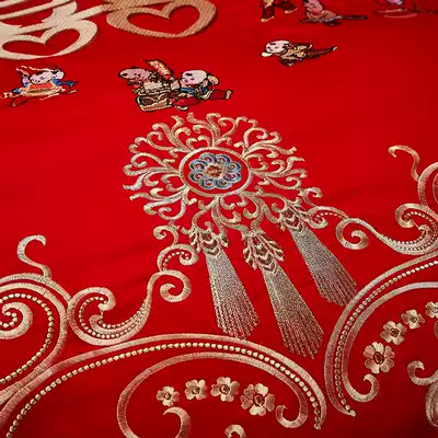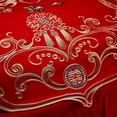 Wedding four-piece group hundred sub-figure big red embroidery Dragon Phoenix wedding new wedding wedding bed sheets quilt cover six or eight sets