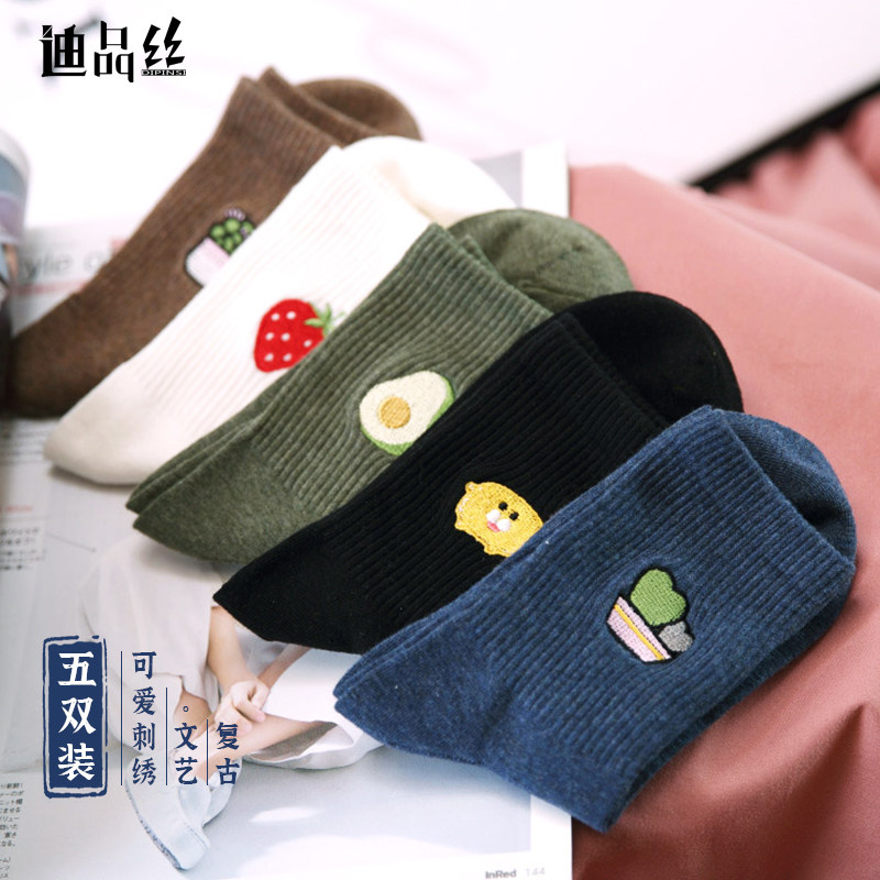 Woman socks female cotton socks tide spring and autumn Korean Edition College wind day cat high waist meumonic cute dog