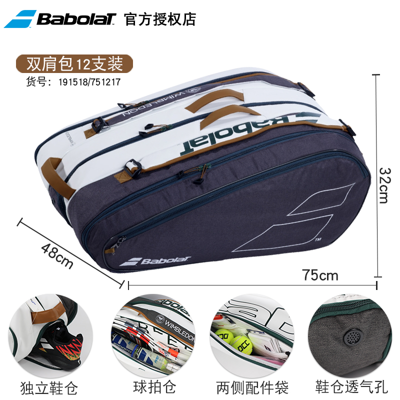 babolat Baobolat Baobolli tennis bag Wimbledon joint and versatile double shoulder sports tennis Shoulder Bag Satchel Bag