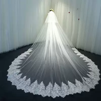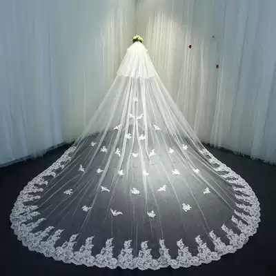 New bridal veil female 2021 Korean long tail lace wedding travel wedding accessories headdress super fairy