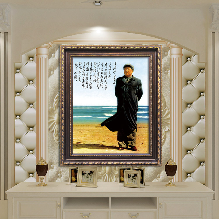 Chairman Mao's portrait with a frame Mao Zedong Beidaihe River with poetry full body like wall painting office Pau Ping hang painting